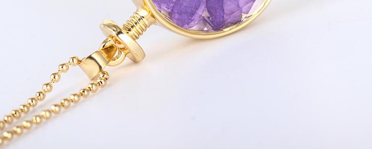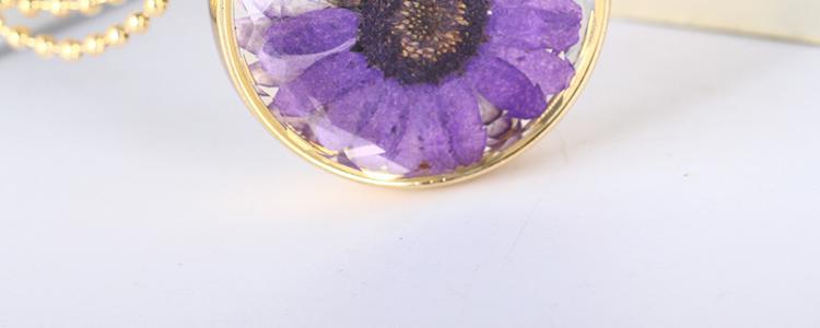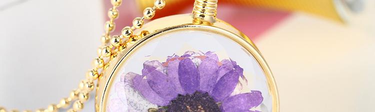 Golden Color Round Shaped Dry Flower Pendant Necklace Three Colors